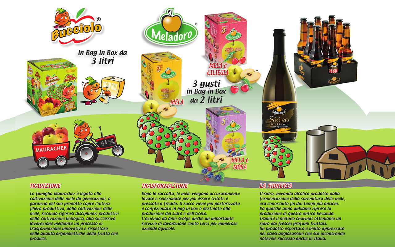 La famiglia Mauracher è legata alla coltivazione delle mele da generazioni, a garanzia del suo prodotto copre l’intera filiera produttiva, dalla coltivazione delle mele, secondo rigorosi disciplinari produttivi della coltivazione biologica, alla successiva lavorazione mediante un processo di trasformazione innovativo e rispettoso delle qualità organolettiche della frutta che produce.
